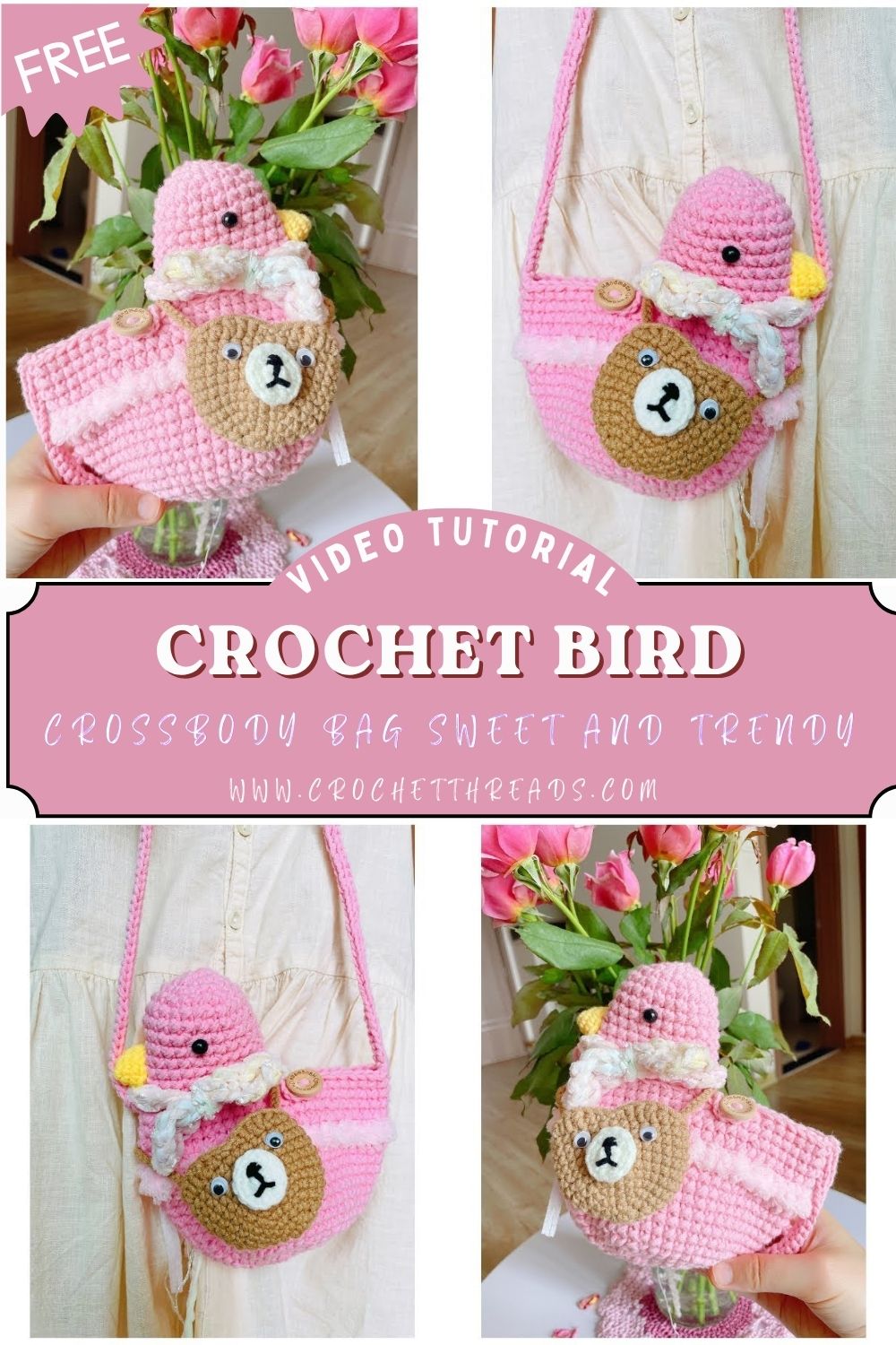 Blissful Crochet Bird Crossbody Bag, Sweet and Trendy Pattern Diy