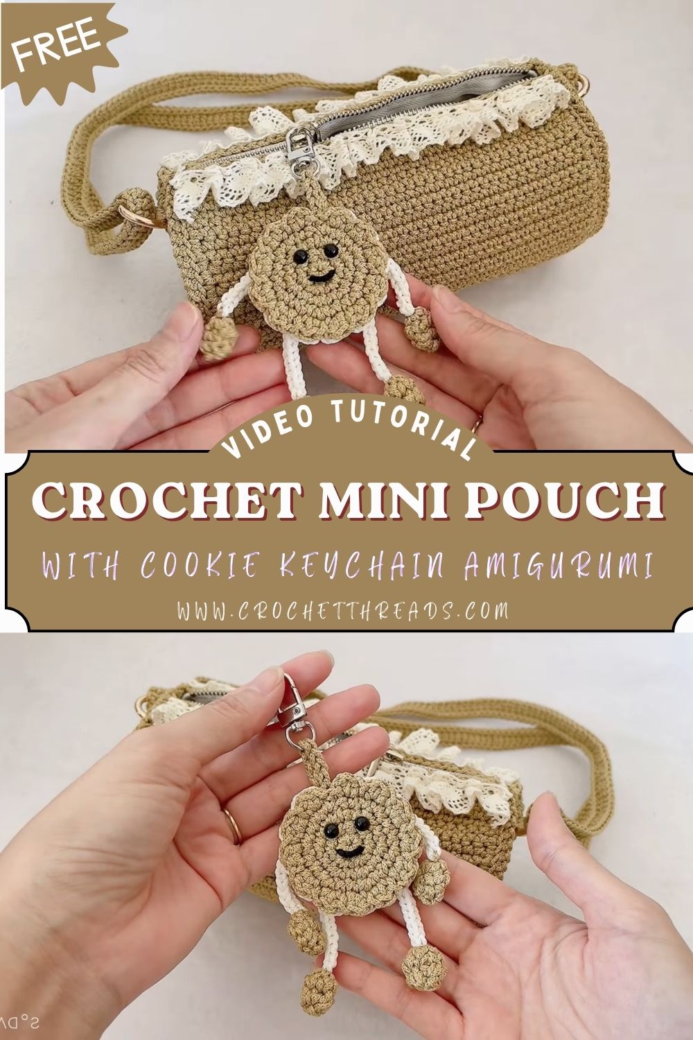 Refined Crochet Mini Pouch with Cookie Keychain Amigurumi Easy Pattern