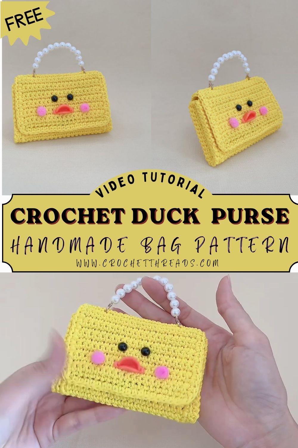 Sparkling Crochet Duck Mini Purse Handmade Bag Pattern
