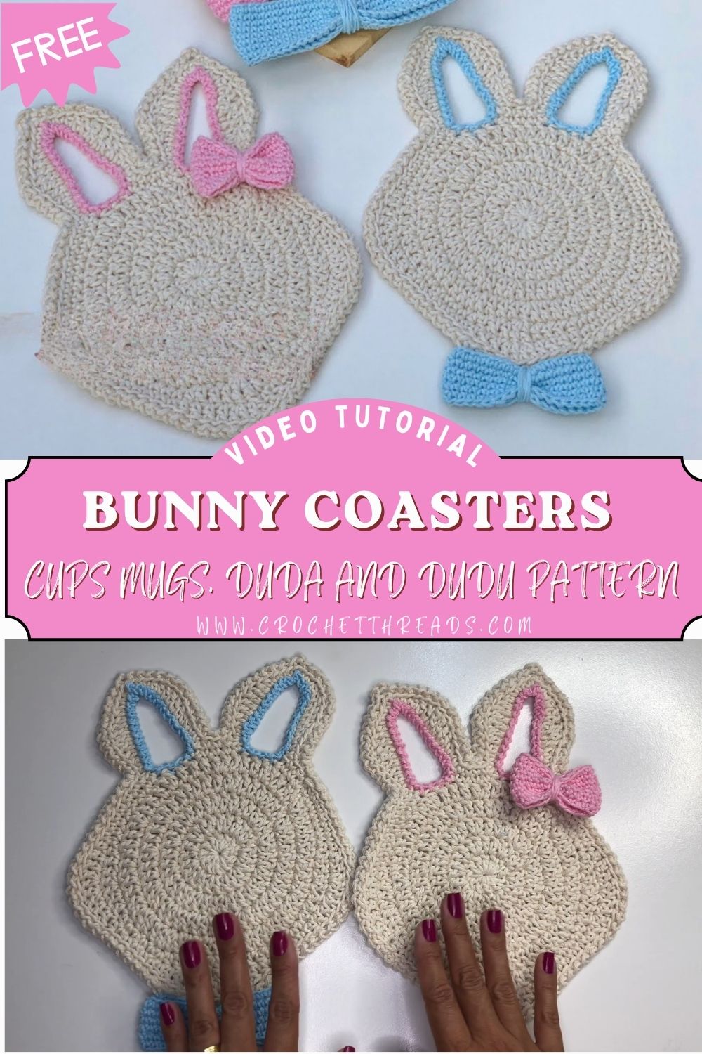 Crochet Bunny Coasters for Cups, Mugs, Duda and Dudu Pattern Coaster Set