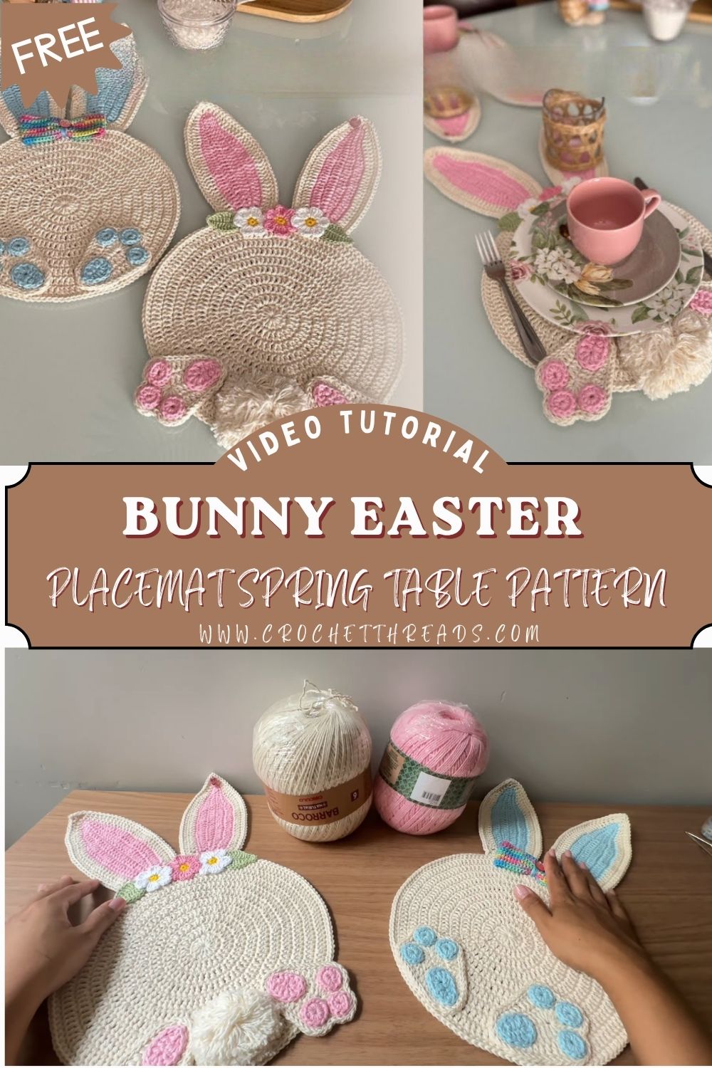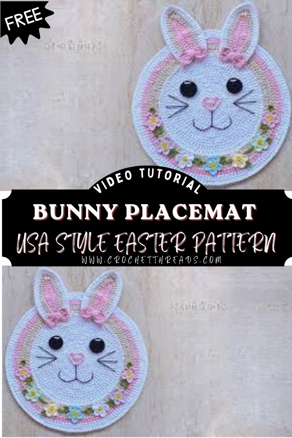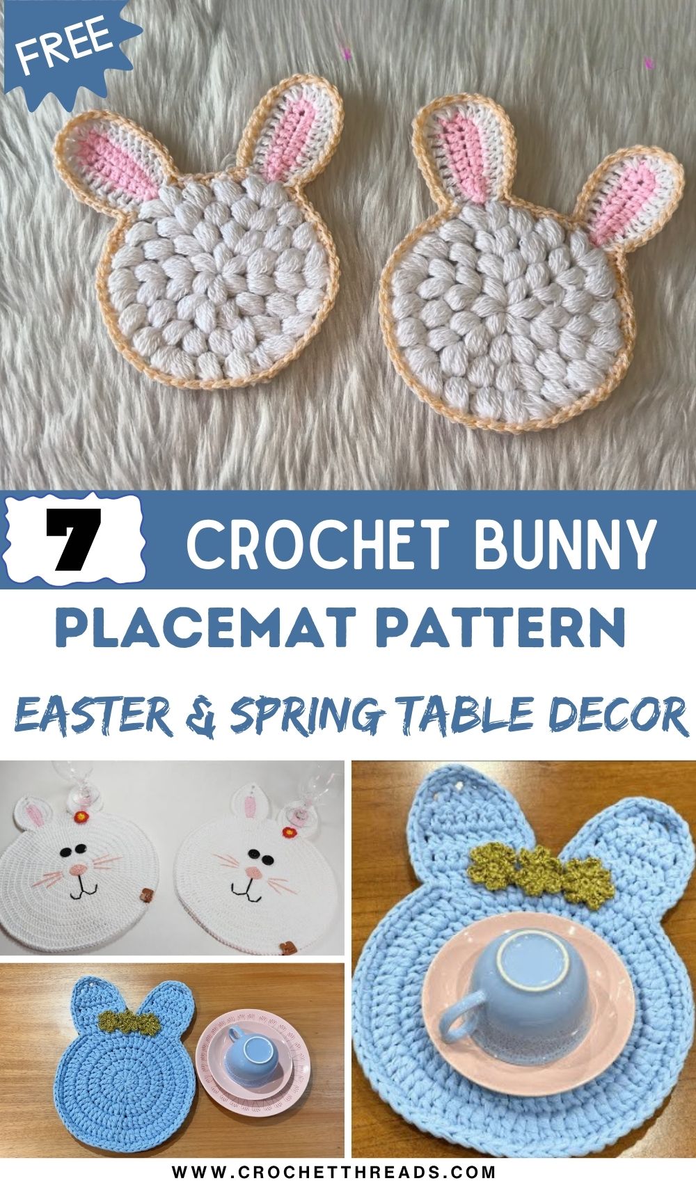 Crochet Bunny Placemat Pattern for Easter & Spring Table Decor