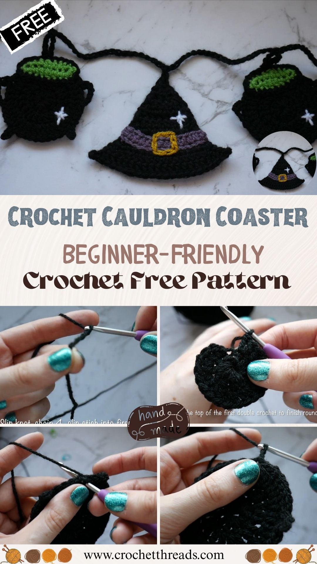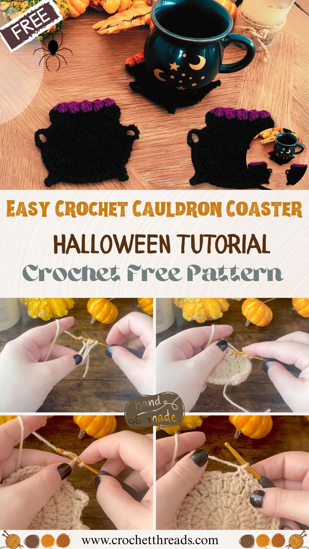 Easy Crochet Cauldron Coaster Halloween Tutorial