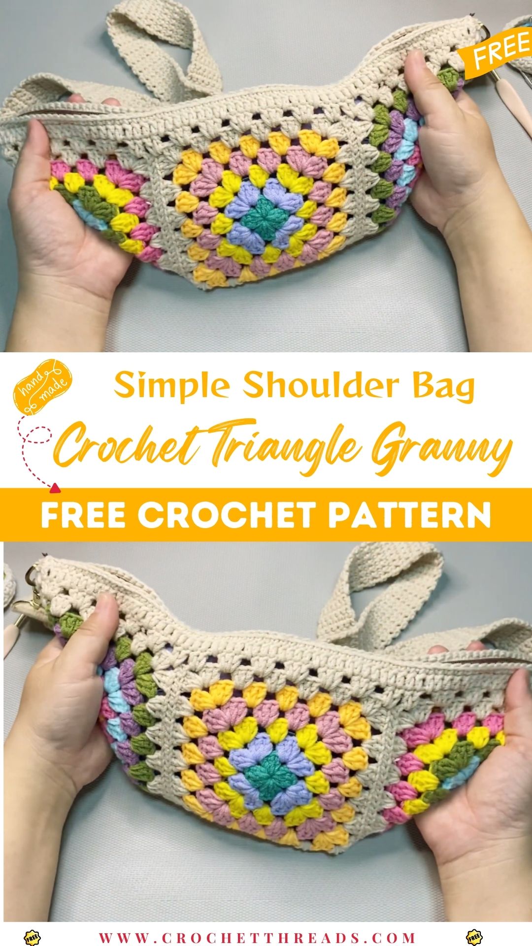 Discover the beauty of triangle granny squares with this elegant shoulder bag pattern. The unique shapes add an artistic flair, creating a visually striking accessory that stands out from the crowd. The tutorial provides clear instructions to help you master this innovative design, suitable for both beginners and seasoned crocheters. This shoulder bag is not only a fashion statement but also a testament to your creative skills.