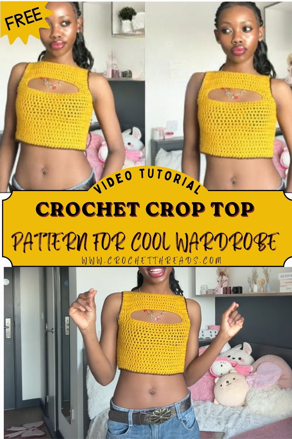 This pattern is great when you want something cute but not complicated. You can watch the pattern and learn how stitch placement affects fit and drape. However, the real win is how easily it mixes with high-waisted bottoms. It’s perfect for stylish summer outfits, and it adds variety to your go-to crochet crop top patterns.