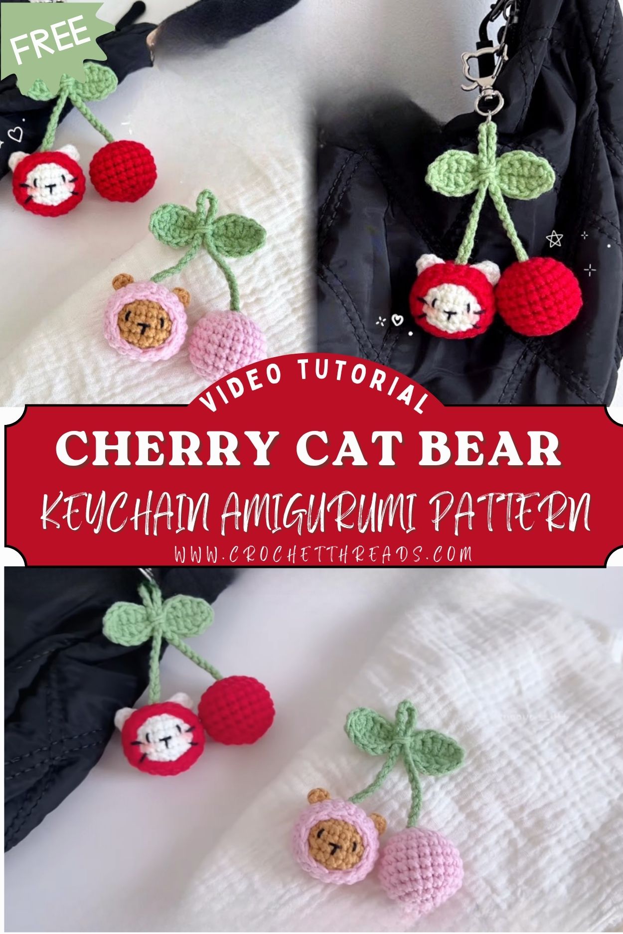 Awesome Crochet Cherry Cat & Bear Keychain Amigurumi Pattern