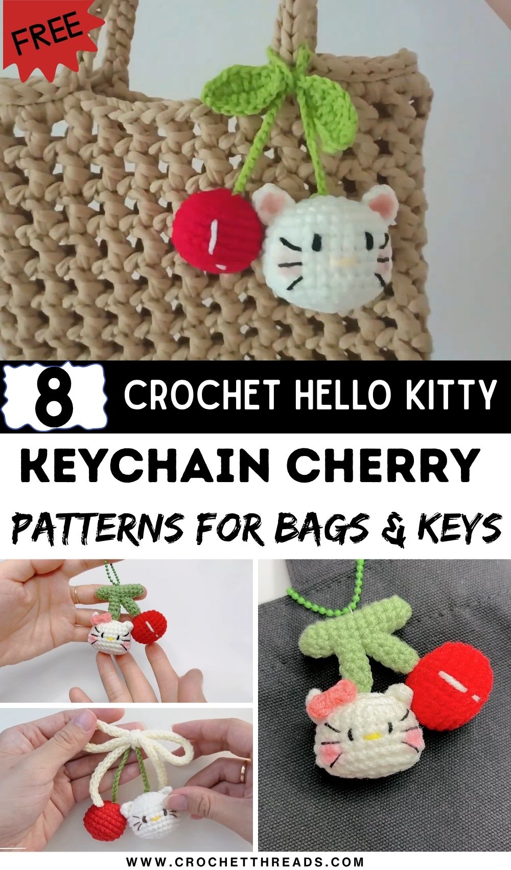 Crochet Hello Kitty Keychain Cherry Patterns for Bags & Keys