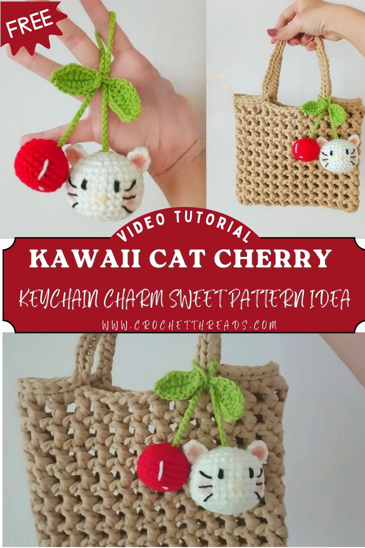 Gorgeous Crochet Kawaii Cat Cherry Keychain Charm Sweet Pattern Idea
