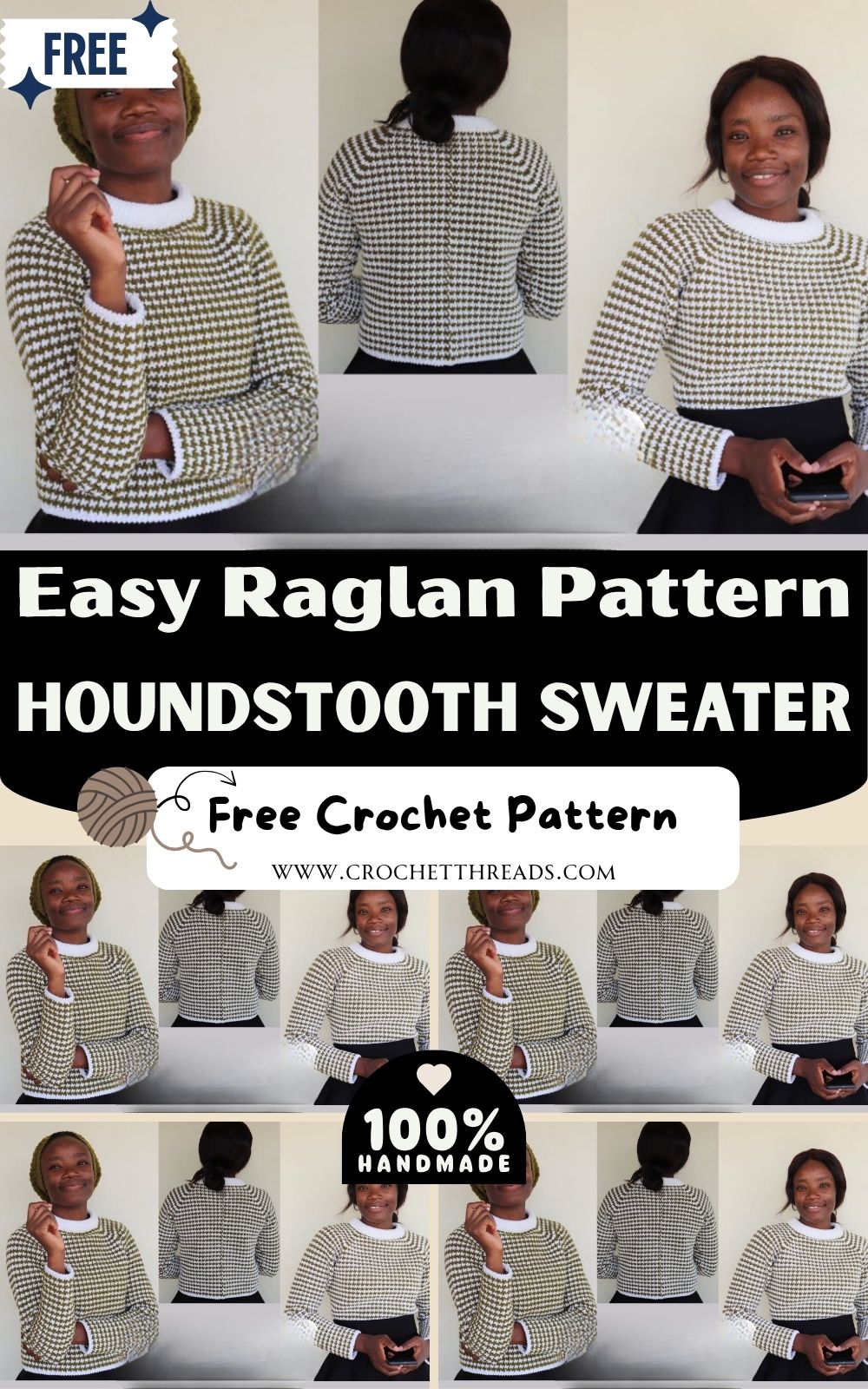 Easy Crochet Raglan Pattern – Stylish Houndstooth Sweater DIY