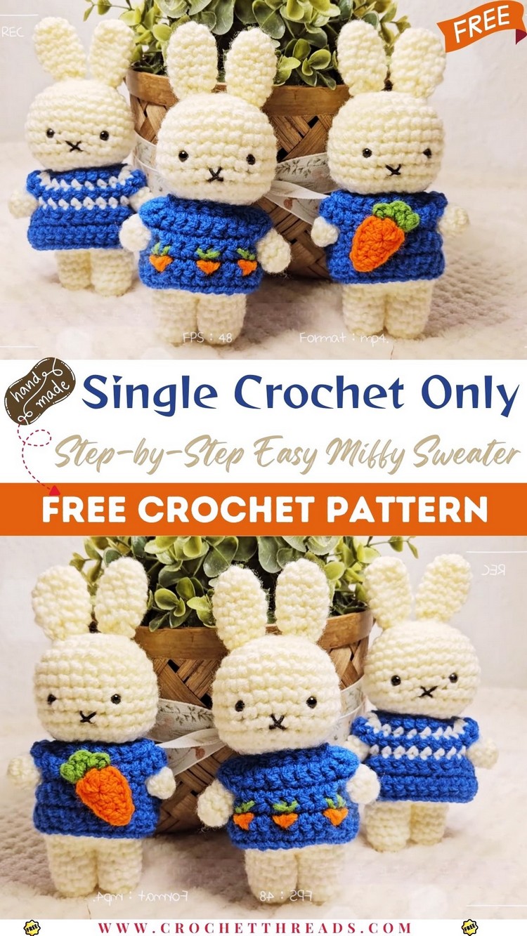 Single Crochet Only Step-by-Step Easy Miffy Sweater