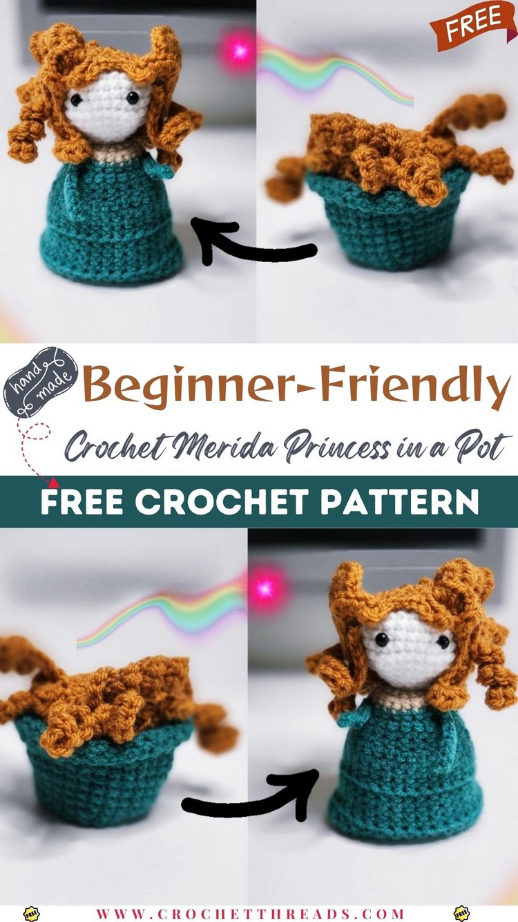 Beginner-Friendly Crochet Merida Princess in a Pot