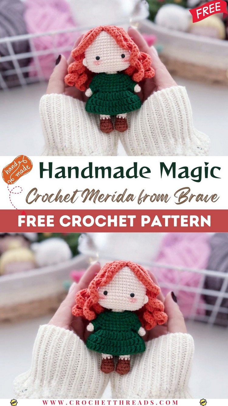 This step-by-step guide brings Merida to life in all her glory. With clear instructions and detailed shaping, the tutorial ensures that even beginners can crochet a doll that looks just like the Brave princess. This pattern is especially wonderful for gifting, as the finished doll is both sturdy and adorable. Whether as a playmate for children or a decorative keepsake, this crochet Merida captures the heart of her adventurous story.