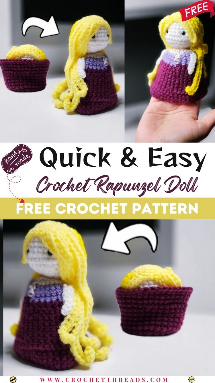 This quick and easy Rapunzel pattern is perfect for beginners who want to dip into the world of Disney princess amigurumi. The tutorial guides you step-by-step, showing how to create Rapunzel’s signature golden hair and sweet features. It’s a small but magical project that can be completed quickly, making it ideal for gifts or party favors. Rapunzel’s cheerful look makes her a delightful handmade toy for children or a lovely decoration for any Disney-inspired collection.