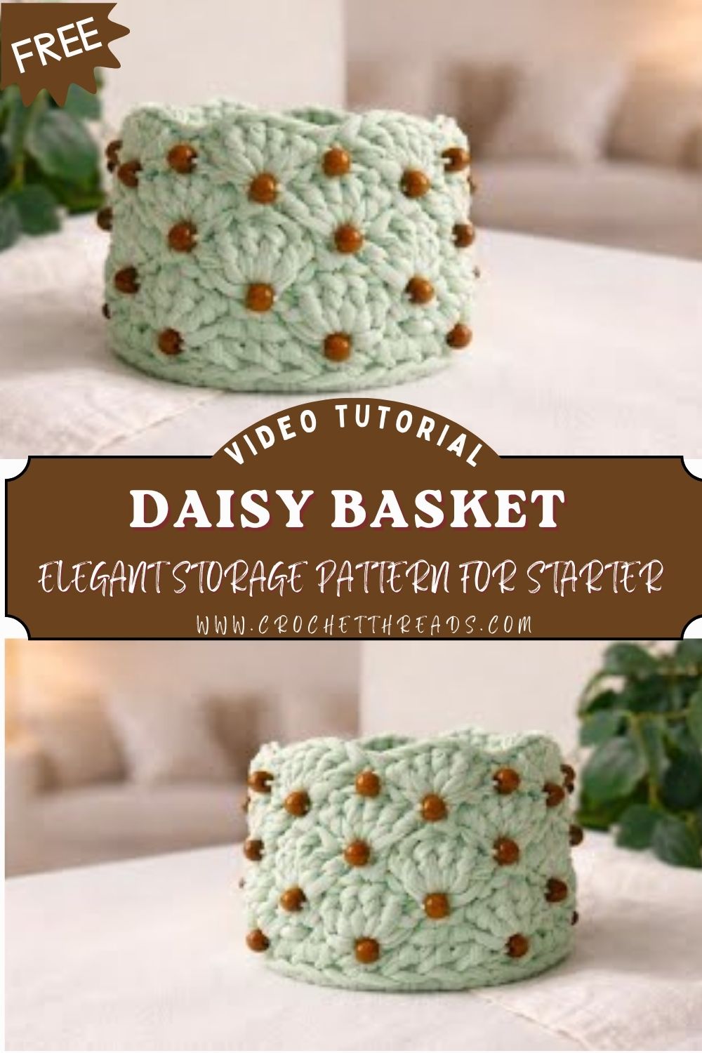 Handmade Crochet Daisy Basket, Elegant Storage Pattern for Starter