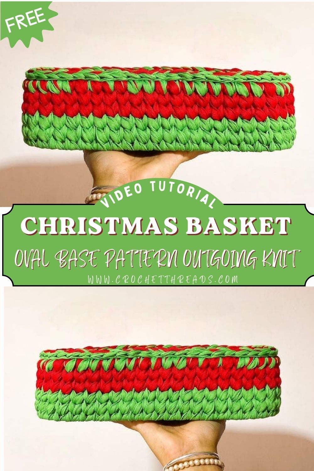 Graceful Crochet Christmas basket with oval base Pattern Outgoing Knit