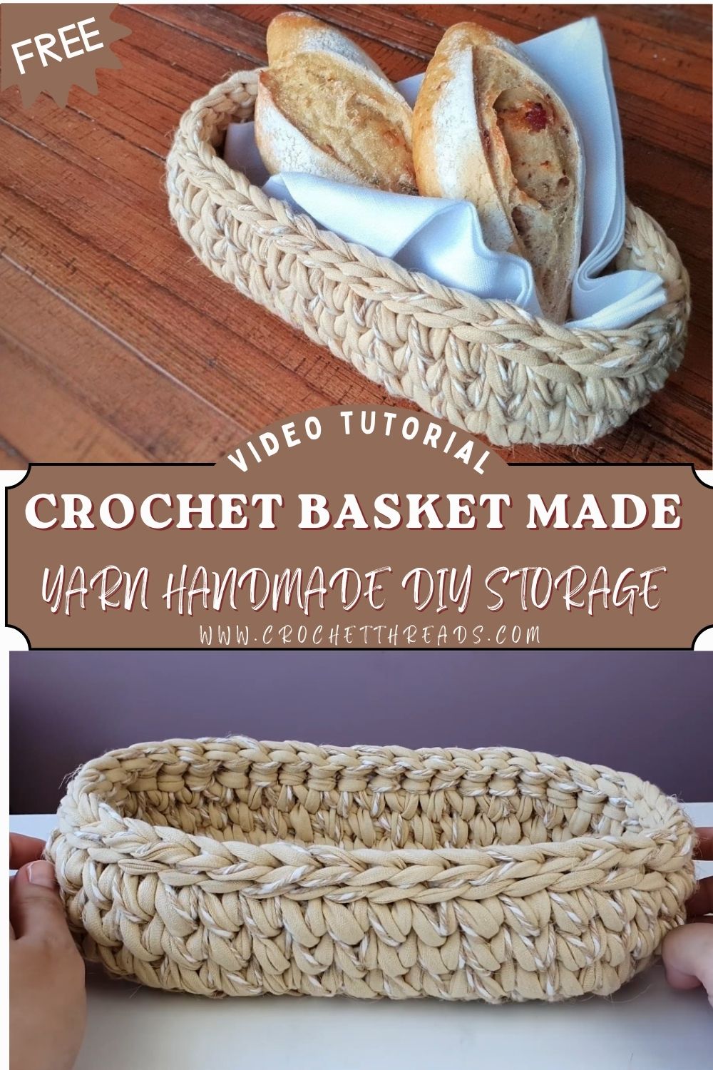 Oval Crochet Basket Made with Yarn Handmade Plush Storage
