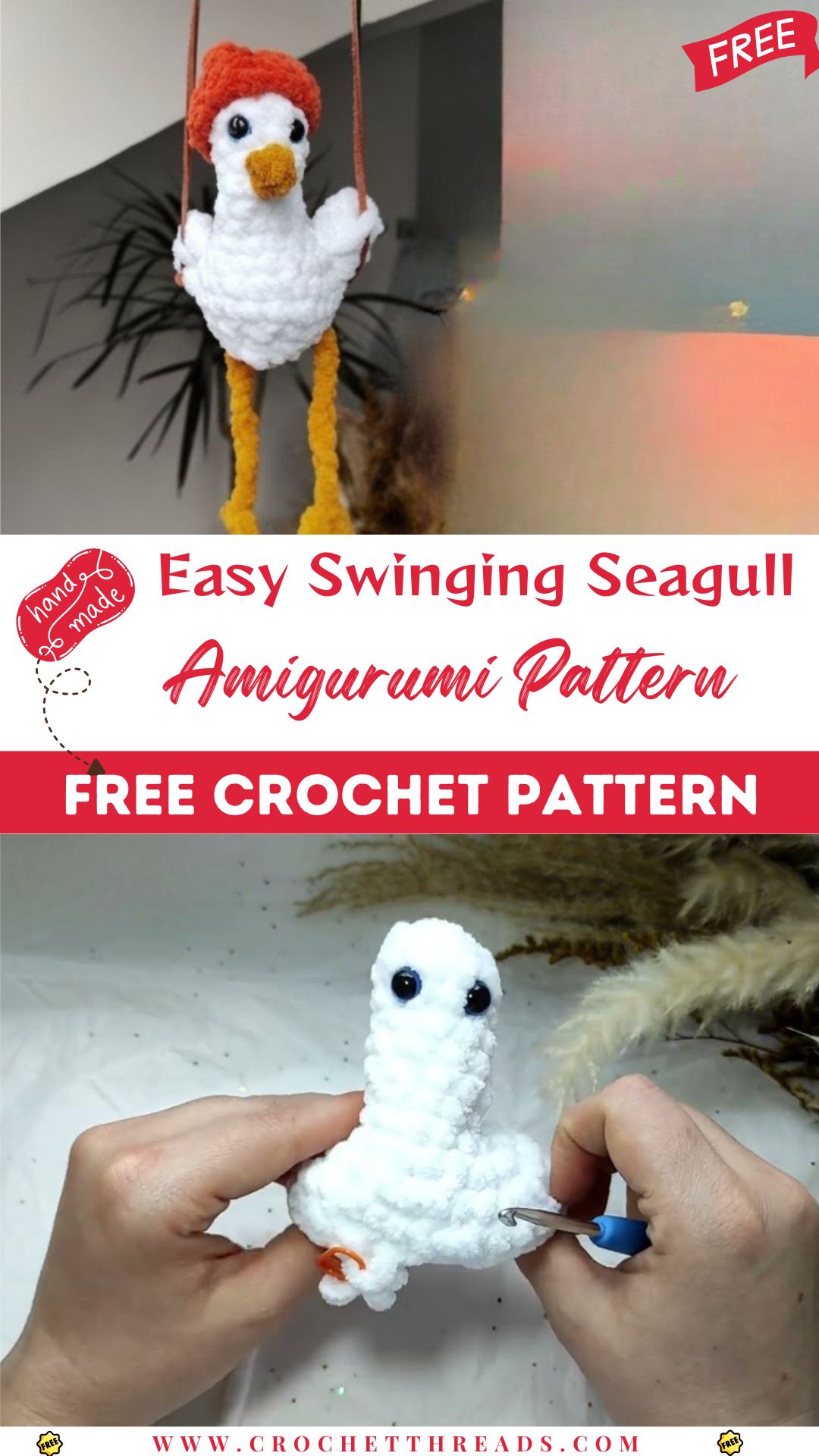 Crochet Swinging Seagull Easy Amigurumi Pattern