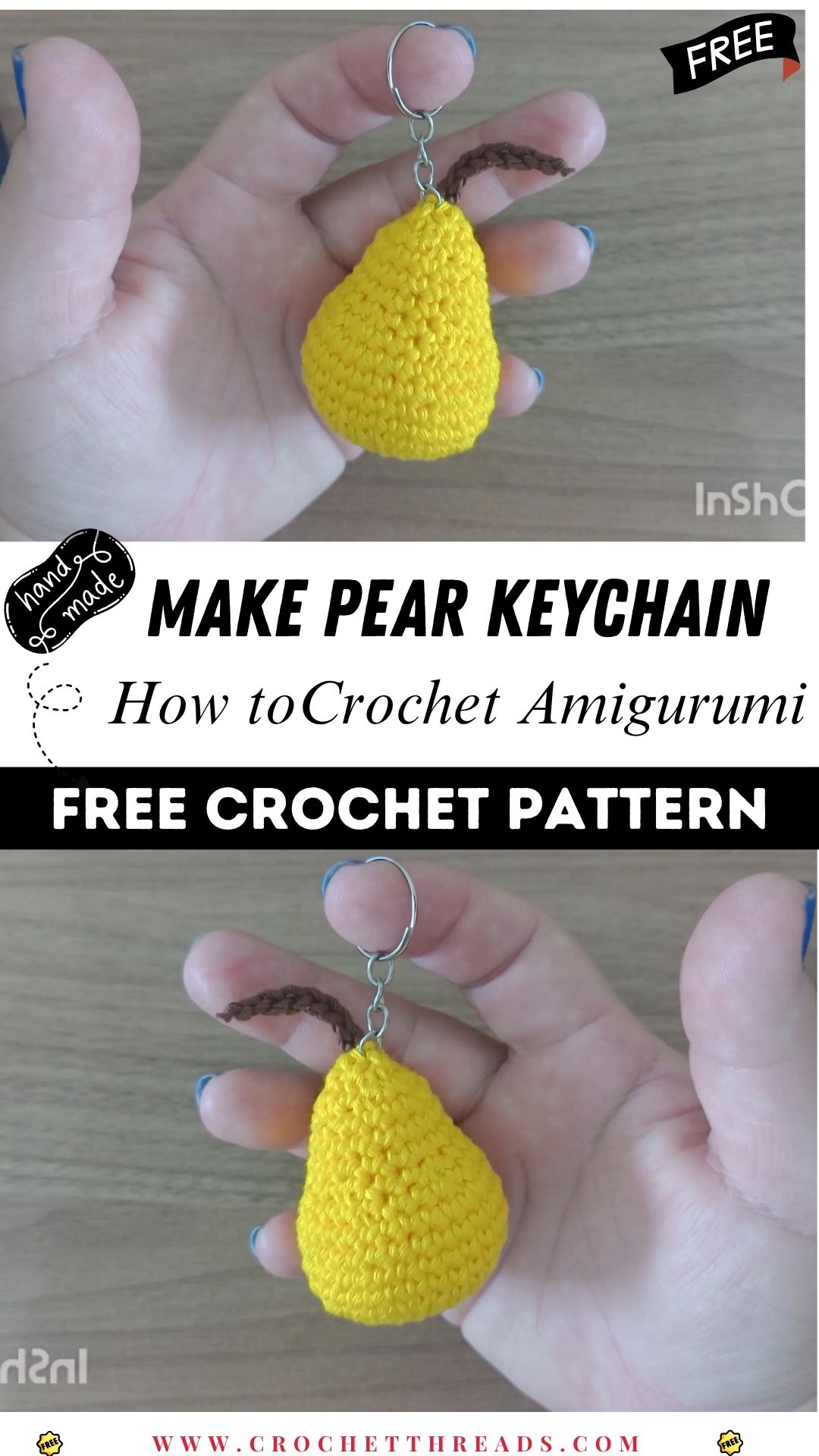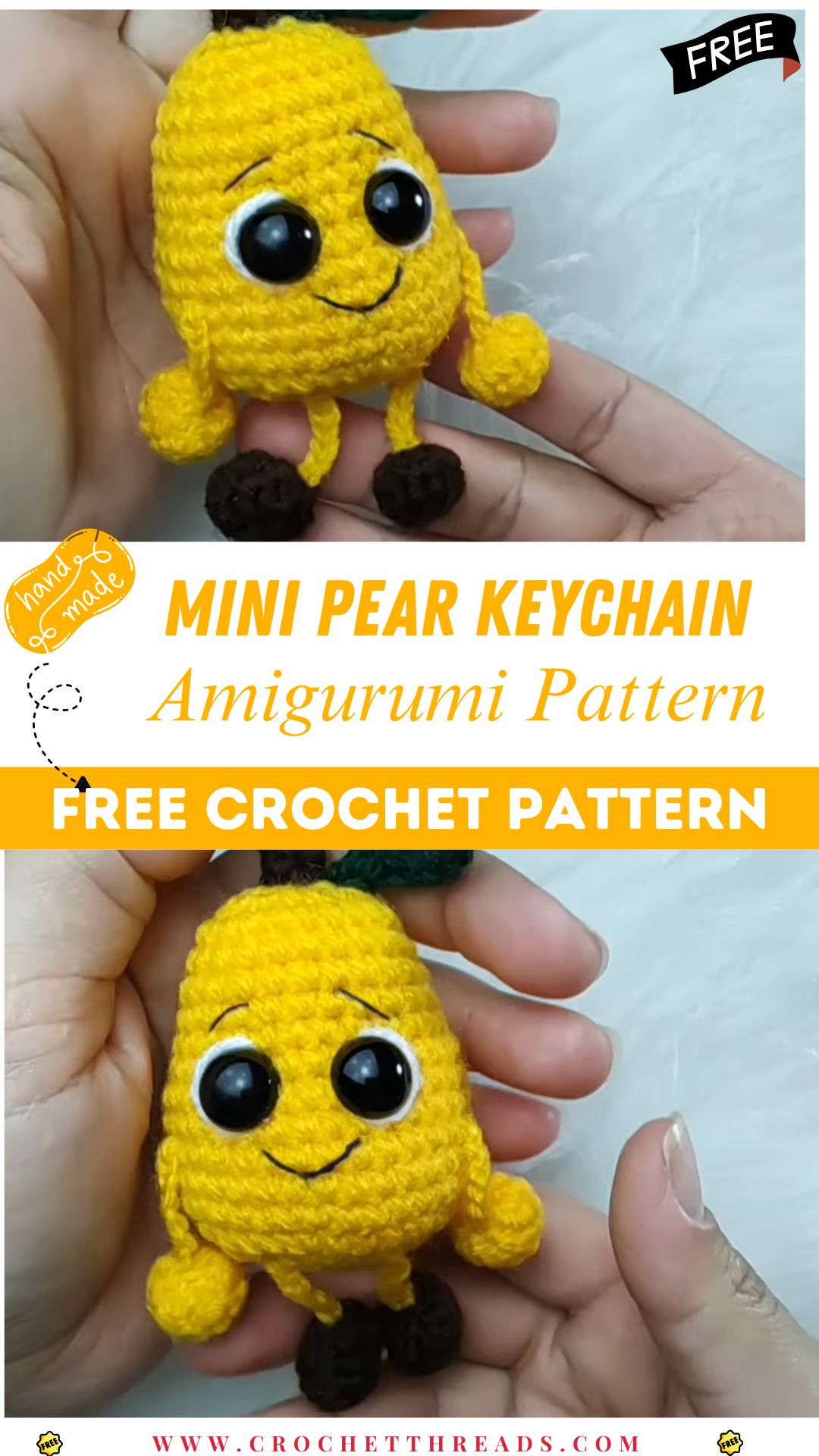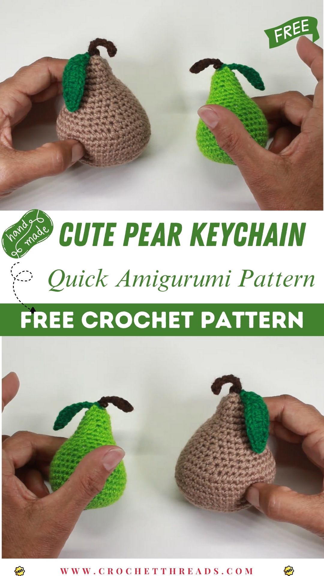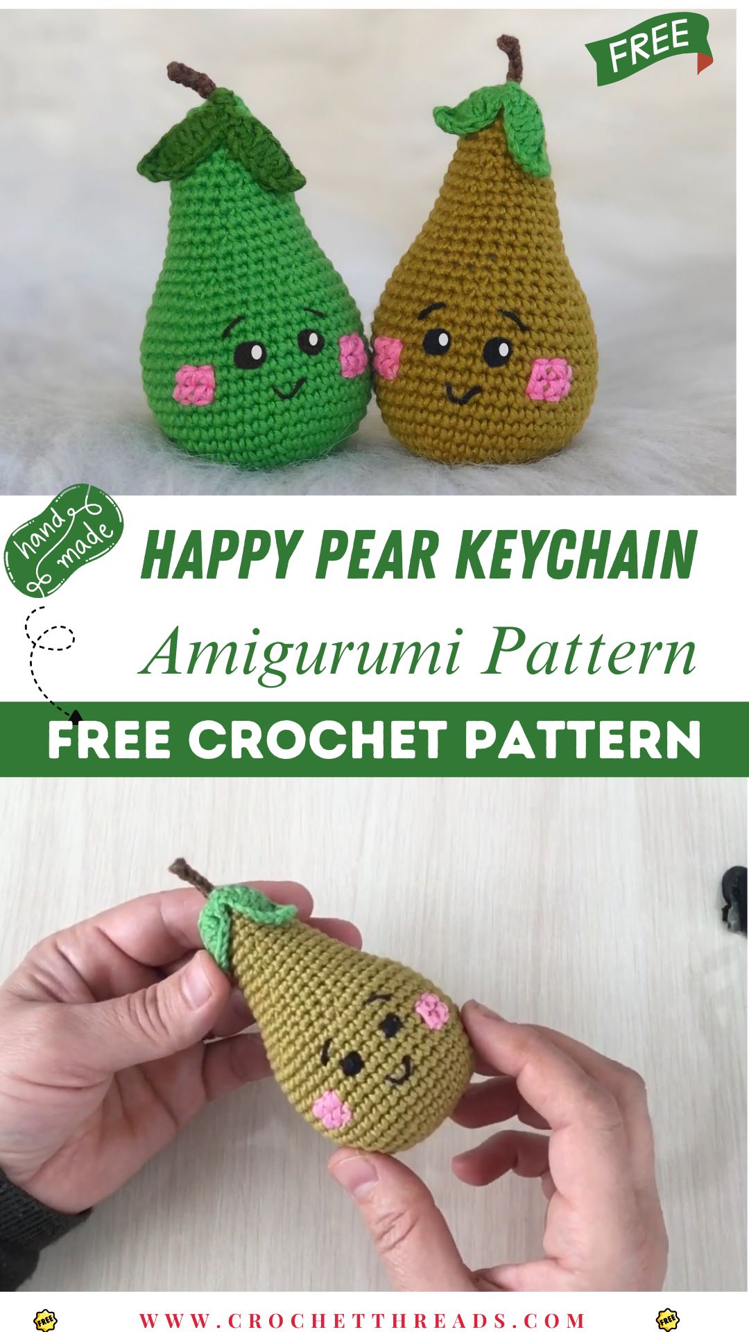 Crochet Happy Pear Amigurumi Keychain Easy DIY Pattern