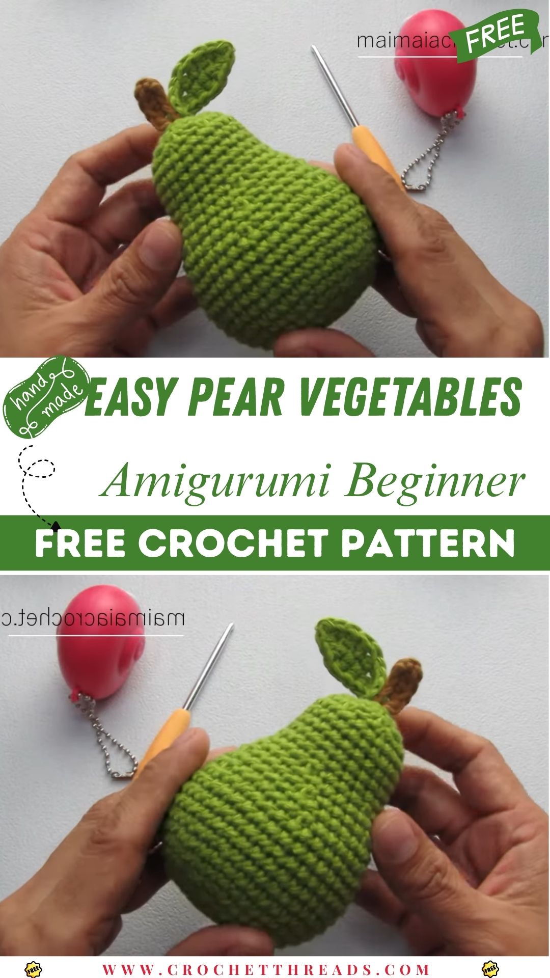 Crochet Mini Pera Amigurumi Handmade Cute Pattern