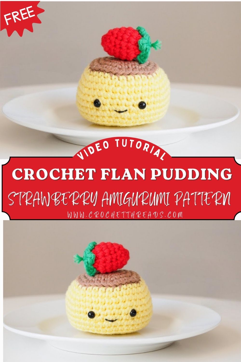 Impressive Crochet Flan Pudding with Strawberry Amigurumi Pattern Toy